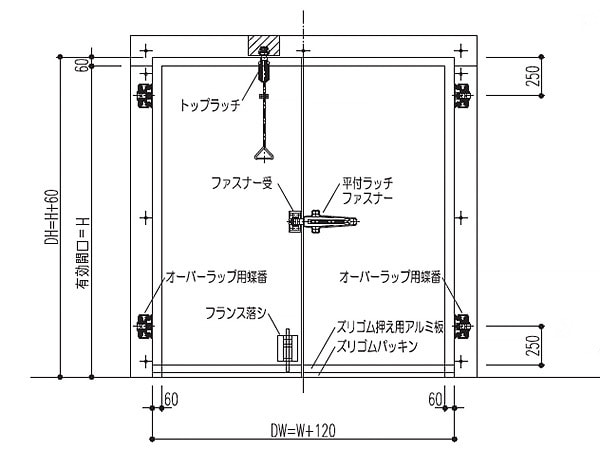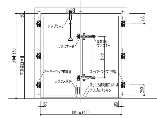オーバーラップ型両開き式手動防熱扉 標準仕様 | |||||
