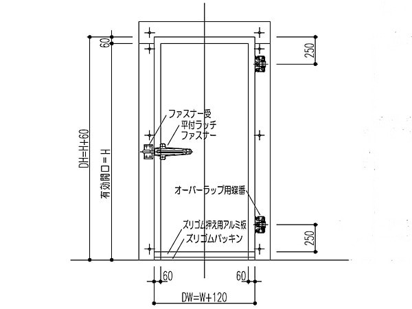 オーバーラップ型片開き式手動防熱扉 標準仕様 | |||||